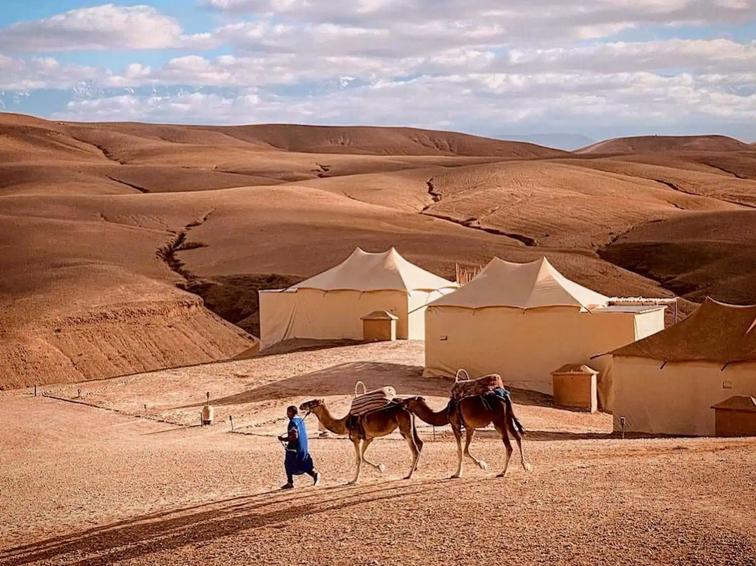 In Agafay, you have the option to take an hour-long camel ride followed by a delicious Moroccan lunch in a luxury desert camp. A glass of the famous Moroccan mint tea will complete your meal, giving you some time to relax or enjoy the sunset.